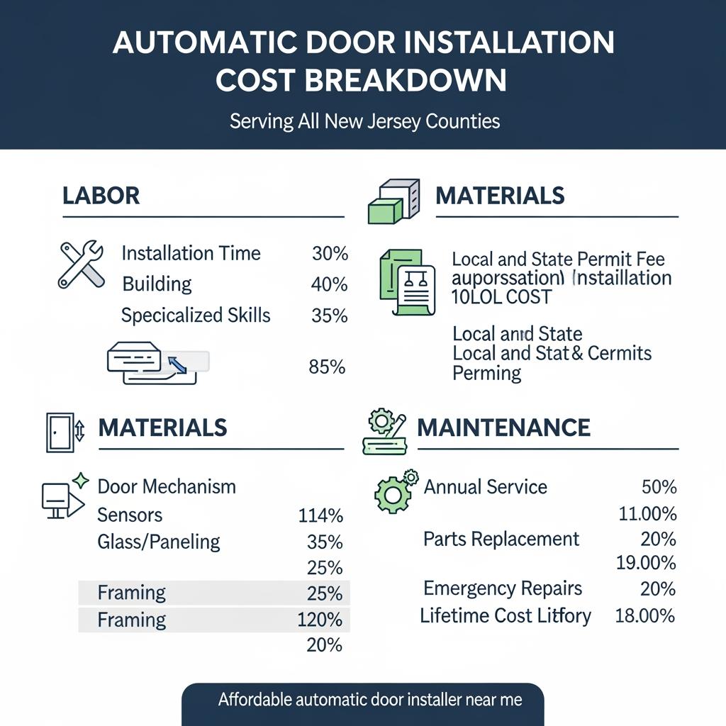 Below is a simplified framework showing typical cost drivers for an “affordable automatic door installer near me serving all New Jersey counties” project: