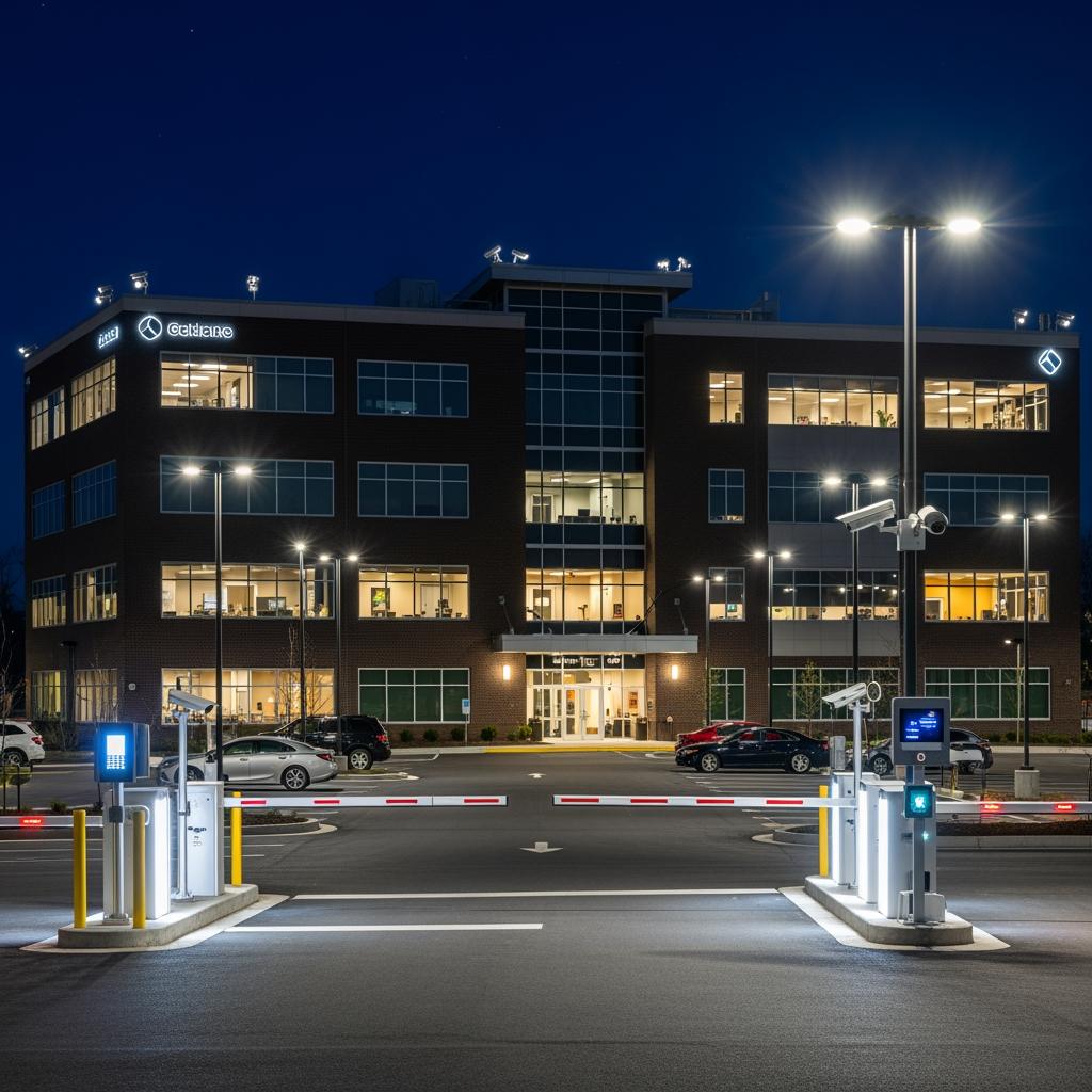 Suburban and campus‑style office complexes often demand wider‑range exterior coverage: parking lots, walkways, and perimeter fencing. License plate captures at main entry points, extended‑range cameras for remote corners of lots, and integration with barrier gates are common. These properties may be quieter at night, which makes automatic alerts to property managers or on‑call staff especially valuable.