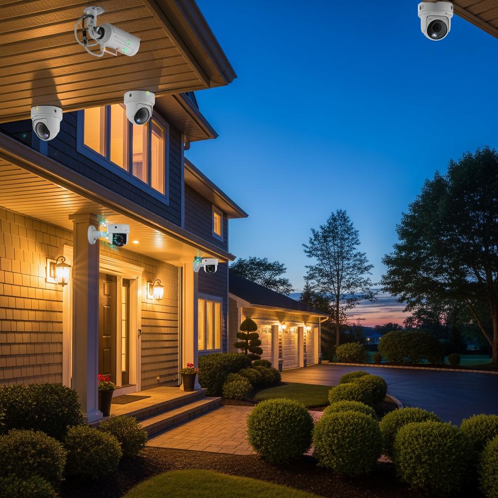 Most single‑family homes in Rhode Island start with three to five cameras covering the front door, driveway, main yard area, and a key interior zone. Larger properties or homes with multiple entrances may need more. A site survey helps determine the minimum number that still provides effective coverage.