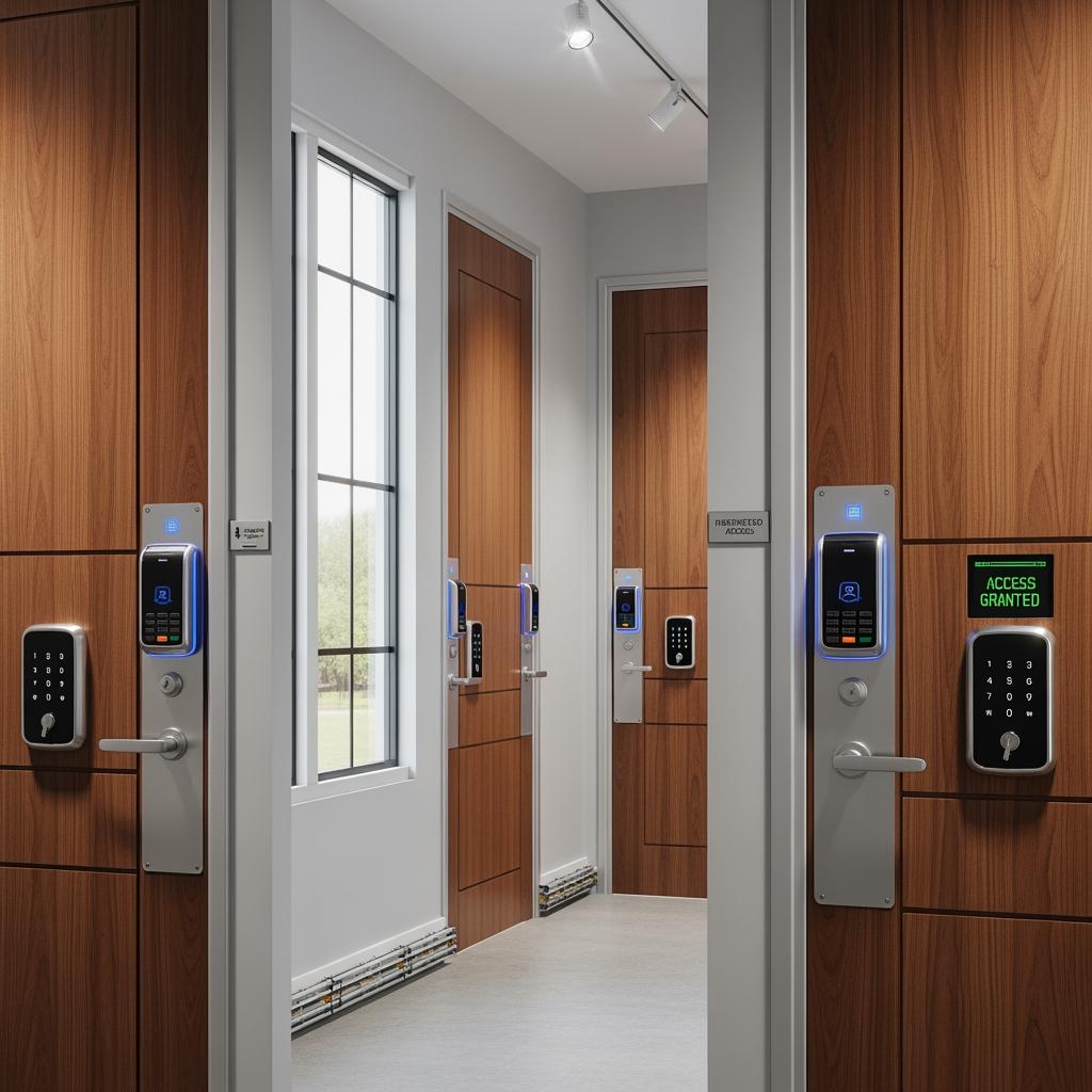 Even in small strip mall locations, it is now common to add access control to service corridors and shared loading docks. In buildings with a mix of uses (e.g., retail downstairs and office upstairs), you might control the stairwell and elevator access as well as the tenant doors themselves. This is where a multi-door system with flexible schedules and role-based access makes ongoing management significantly easier than a purely mechanical key system.