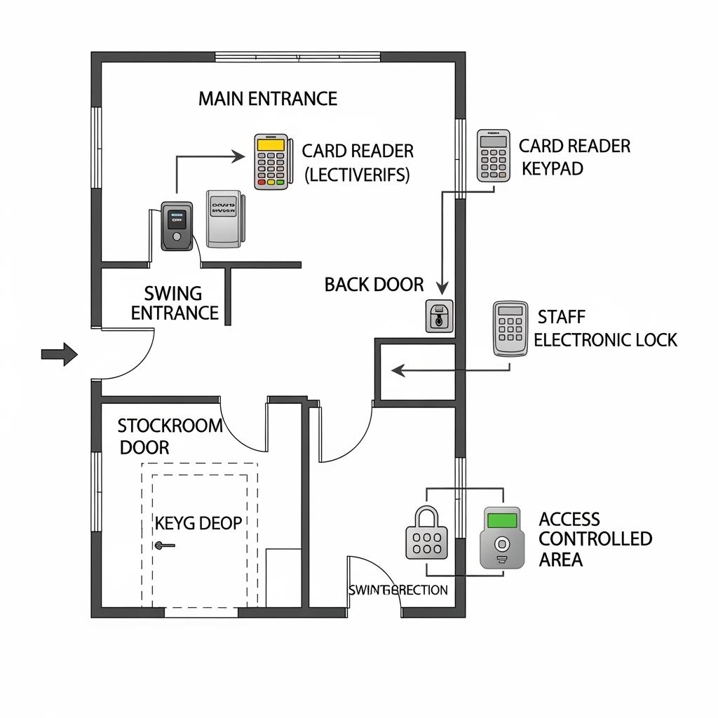 For NC small offices and retail stores, the value of a multi-door access system is less about “high security” and more about day-to-day control and convenience: keeping back doors from being propped open, separating public and staff-only spaces, and making turnover easier when staff leave so you are not changing keys every month.
