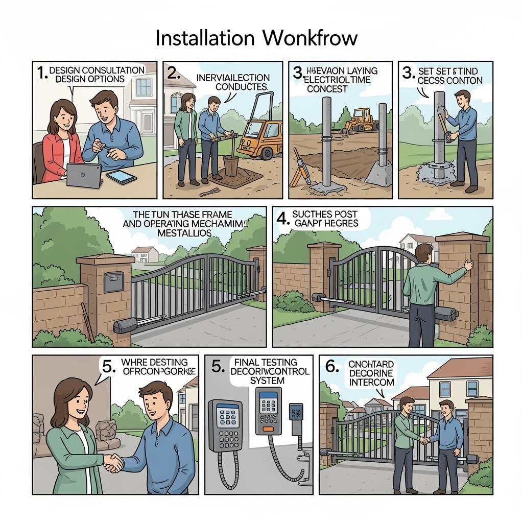 A typical design and install process might look like this: first, you share site photos, approximate measurements, and any HOA or township rules you’re aware of; second, the installer performs a site visit to verify grades, clearances, and power routes; third, they provide a written proposal with options for gate style, operator type, and smart controls; fourth, they handle permits and scheduling; and finally, they perform installation, testing, and walkthrough, explaining how to use and maintain the system.