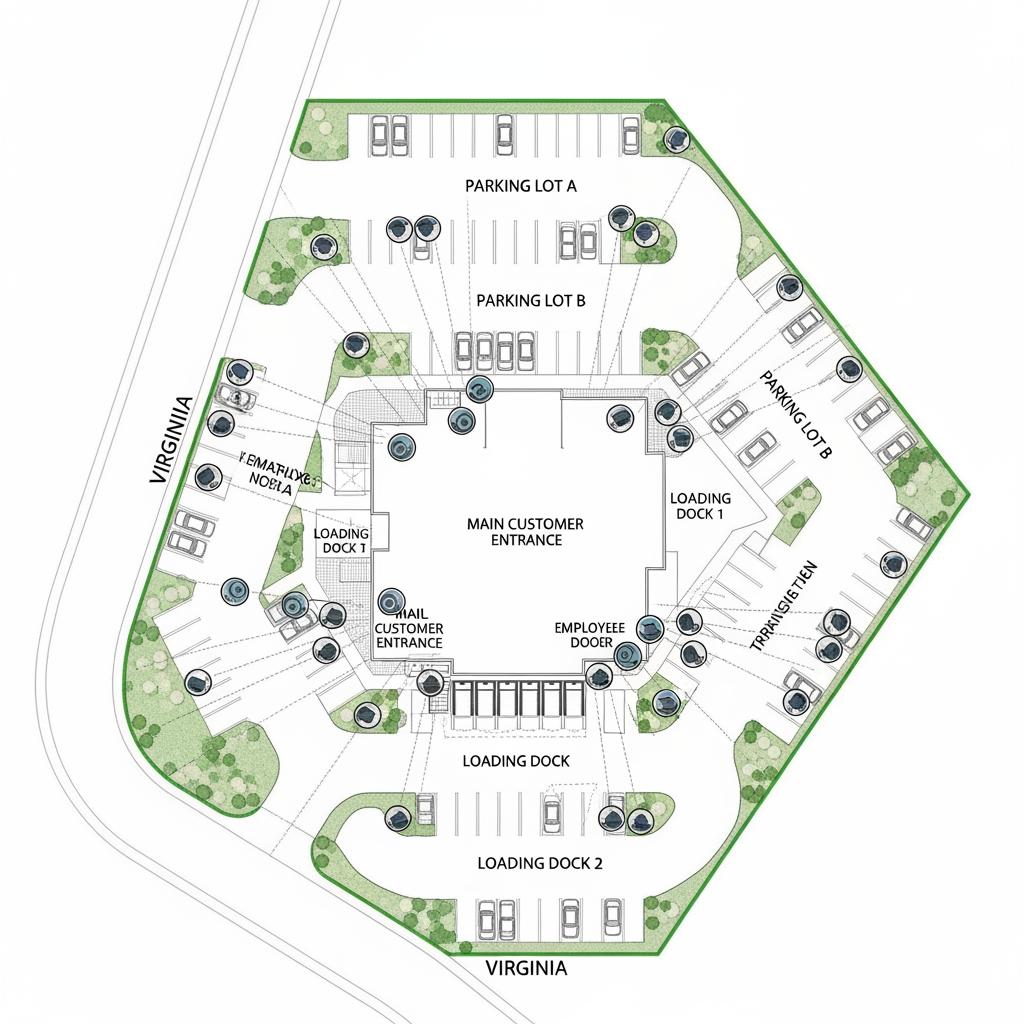 Effective business security camera installation for outdoor areas in Virginia is about prioritization. You don’t need to cover every square inch equally; you need to protect decision points and risk zones where incidents are most likely or most costly.