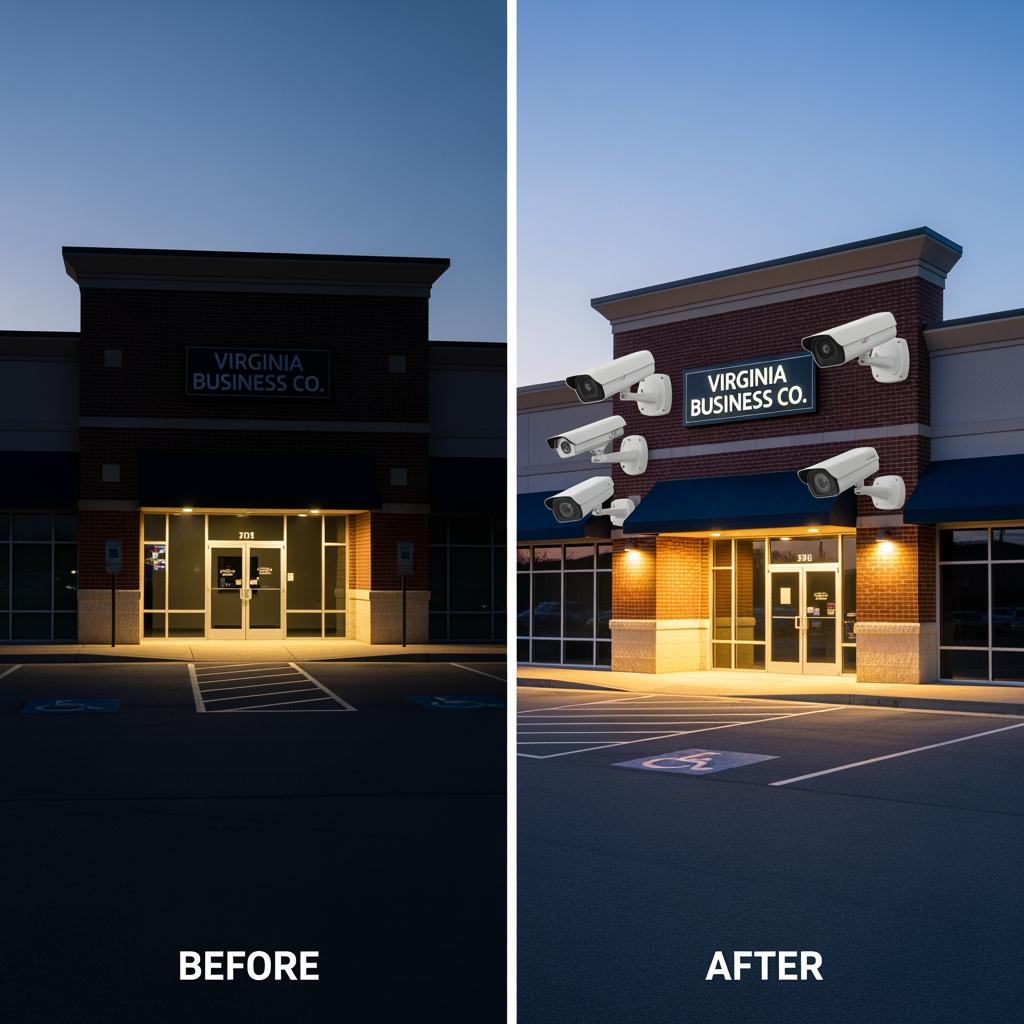 A practical rule of thumb is: any area where you would want to say “show me what happened there yesterday” deserves at least one clear, well-placed camera. In Virginia’s mix of older structures and newer strip centers, mounting options may be limited, so design must consider existing walls, poles, and rooflines to avoid glare, backlighting, or blocked views.