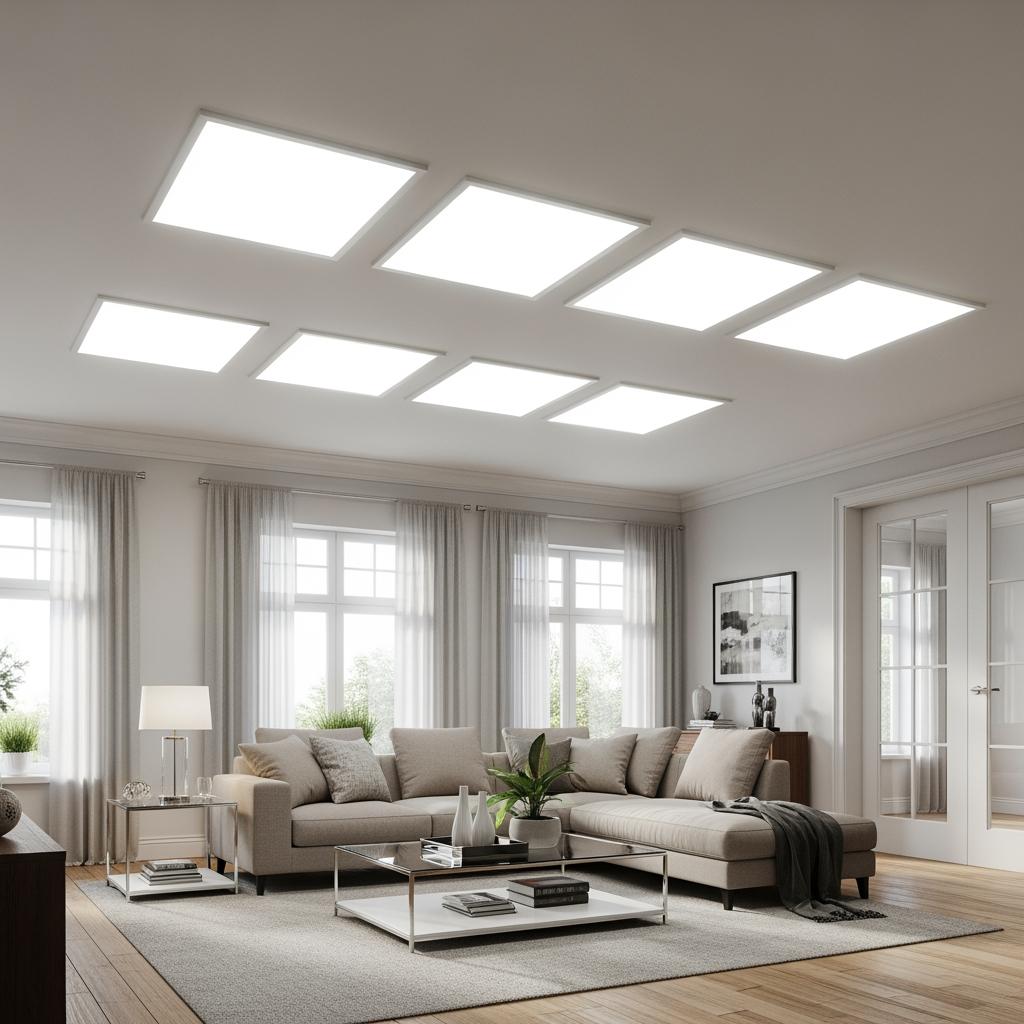 Hallways require continuous, even light so occupants can navigate safely at night. Slim LED panels spaced at regular intervals along the length of the hall can replace multiple small surface fixtures and reduce hot spots. Dimming can be useful here as well, allowing you to run lower light levels overnight. In living rooms, aesthetics play a bigger role; some homeowners prefer low‑profile panels complemented by floor or table lamps, while others use panels as the main light source arranged symmetrically for a clean, modern ceiling.