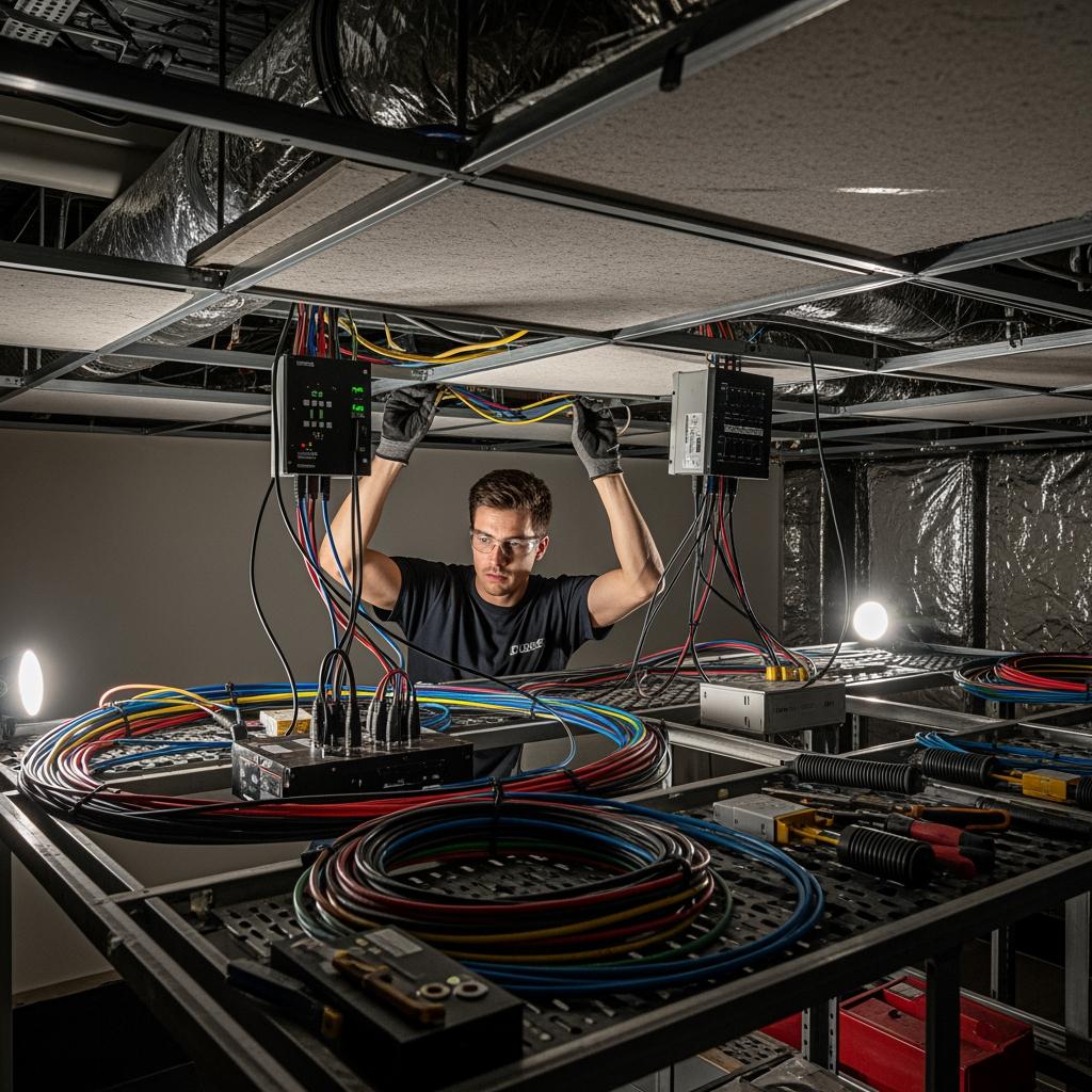 Next is rough‑in. In new construction, low‑voltage cabling for DMX (often shielded twisted pair) is run alongside power, staying within code‑allowed pathways. In retrofits, the installer carefully routes control and power lines behind existing finishes where possible, or uses surface raceways if walls can’t be opened. Junction boxes for drivers and DMX interfaces are located in accessible spots such as utility rooms, mechanical closets, or above accessible ceilings.
