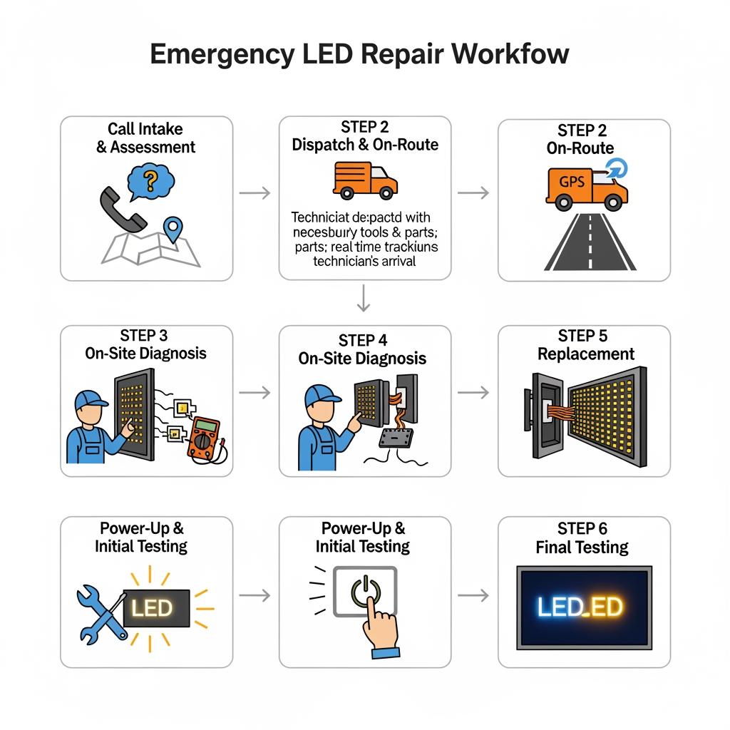 Understanding these patterns lets repair teams stock the right spare parts on their trucks—universal power supplies, data receivers, cabling, and common LED module types—so they can often complete a permanent fix in a single visit rather than just patching the problem.
