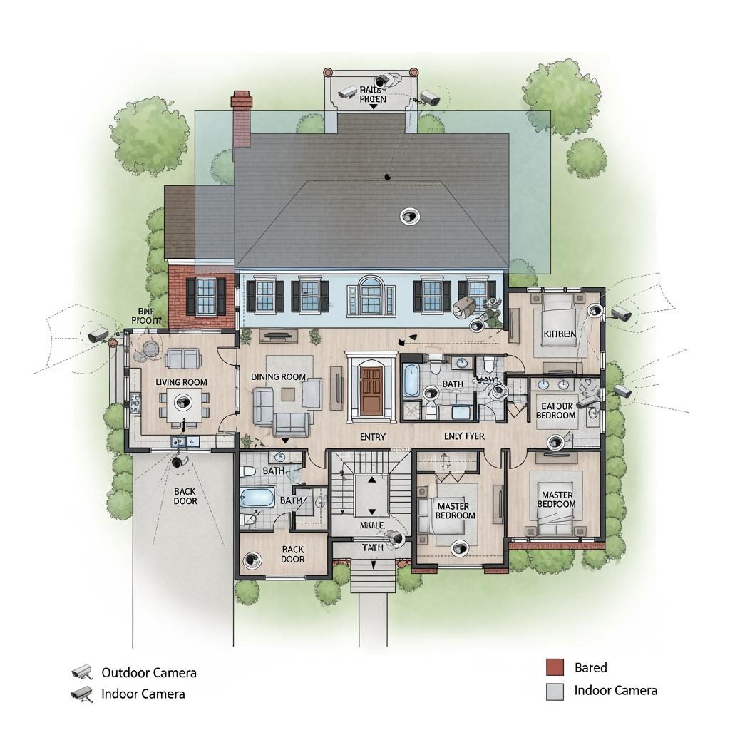 | Indoor and outdoor cameras | Capture video in targeted indoor areas and full exterior perimeter | Resolution, night vision range, weather rating, viewing angle |
