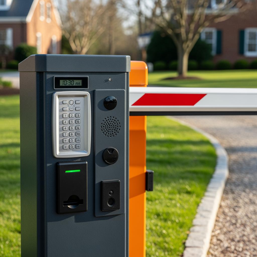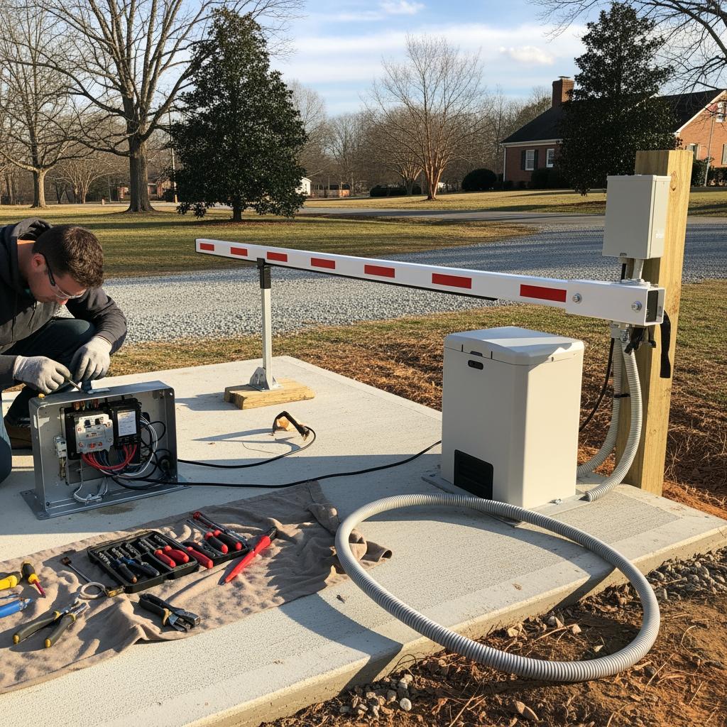 On a typical Virginia residential lot, you will see these systems at the entrance to a small private road, a cluster mailbox parking pad, a townhome courtyard, or a shared driveway serving several houses. The operator mechanism is usually mounted on a pedestal at one side of the lane, with the arm spanning 8–16 feet depending on driveway width. Safety devices such as vehicle loops in the pavement and photo-eyes prevent the arm from closing on a vehicle.
