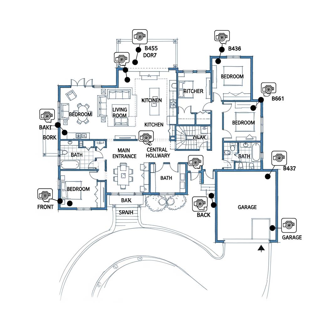 In denser neighborhoods, a typical CCTV layout emphasizes the front elevation: cameras watching the sidewalk, front steps, shared driveways, and mail or package areas. Even a small camera count can dramatically increase awareness of what’s happening around your property lines. In quieter cul-de-sacs or rural roads, camera placement shifts toward monitoring long driveways, detached garages, and outbuildings.