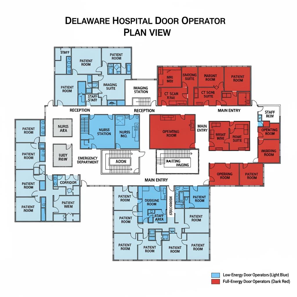 | Location / Need in DE Hospitals | Better fit: low energy hospital door operators for Delaware medical centers | Better fit: full‑energy door operators |