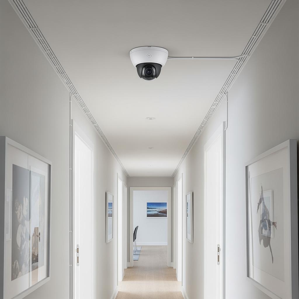 Dome camera under eaves or porchesFront door, back patio, common entry pointsDiscreet look, often vandal‑resistant