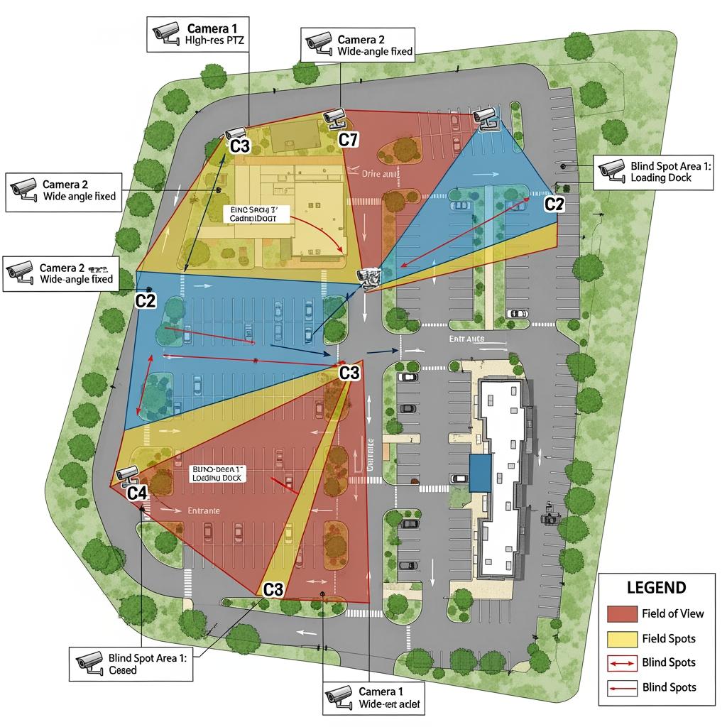 An effective design process often follows this sequence: walk the property, mark entrances, exits, payment machines, and blind corners; overlay camera fields of view on a site plan; adjust heights and angles for local obstacles such as snow piles, trees, or low‑hanging signs; and finally align the layout with your budget and recording policies.