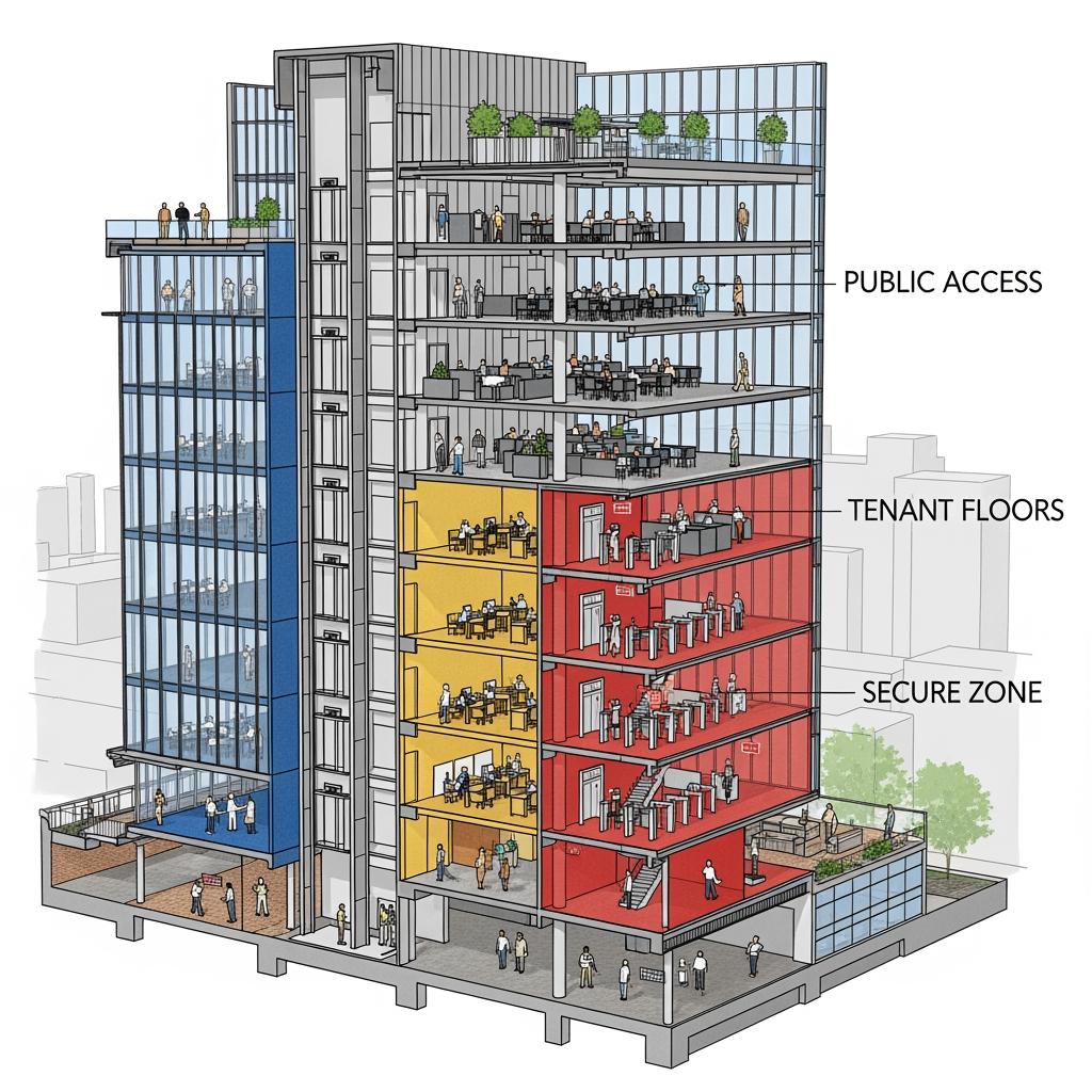 | Tenant retention | Tenants feel safer and more confident hosting clients. | Clear separation between public and private areas, especially after hours. | Important for law, finance, and healthcare tenants with sensitive data. |