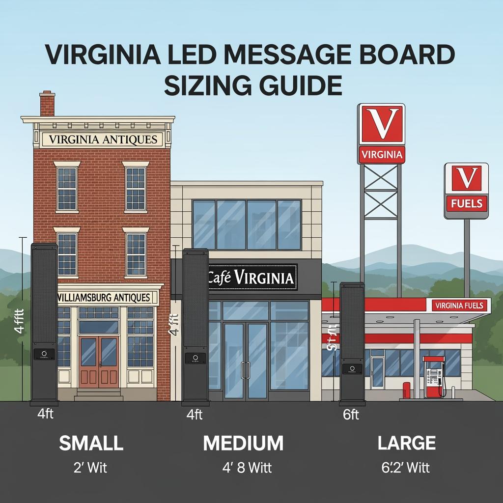 A compact storefront LED message board integrated into an existing sign structure can be significantly less expensive than a standalone pylon with a new foundation, cabinet, and decorative cladding. Higher‑resolution (lower pitch) signs cost more per square foot but provide better legibility at closer distances. On the other hand, choosing an overly large or overly fine‑pitch board for a small Virginia shop can add cost without real marketing benefit.
